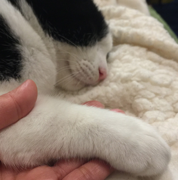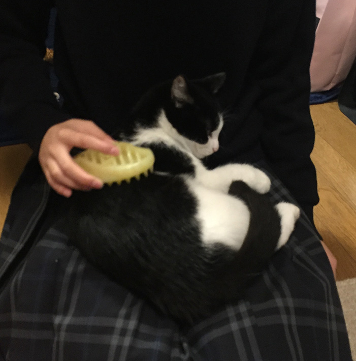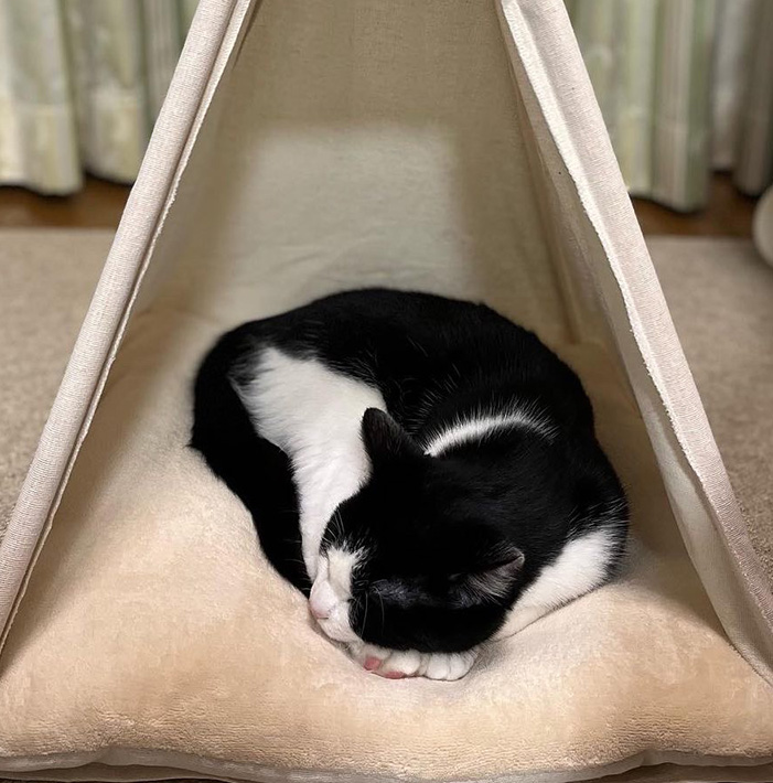 一緒には寝ません。自分の寝床ですやすや寝ます
